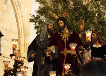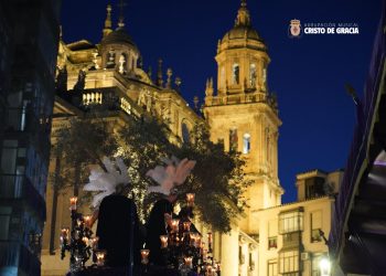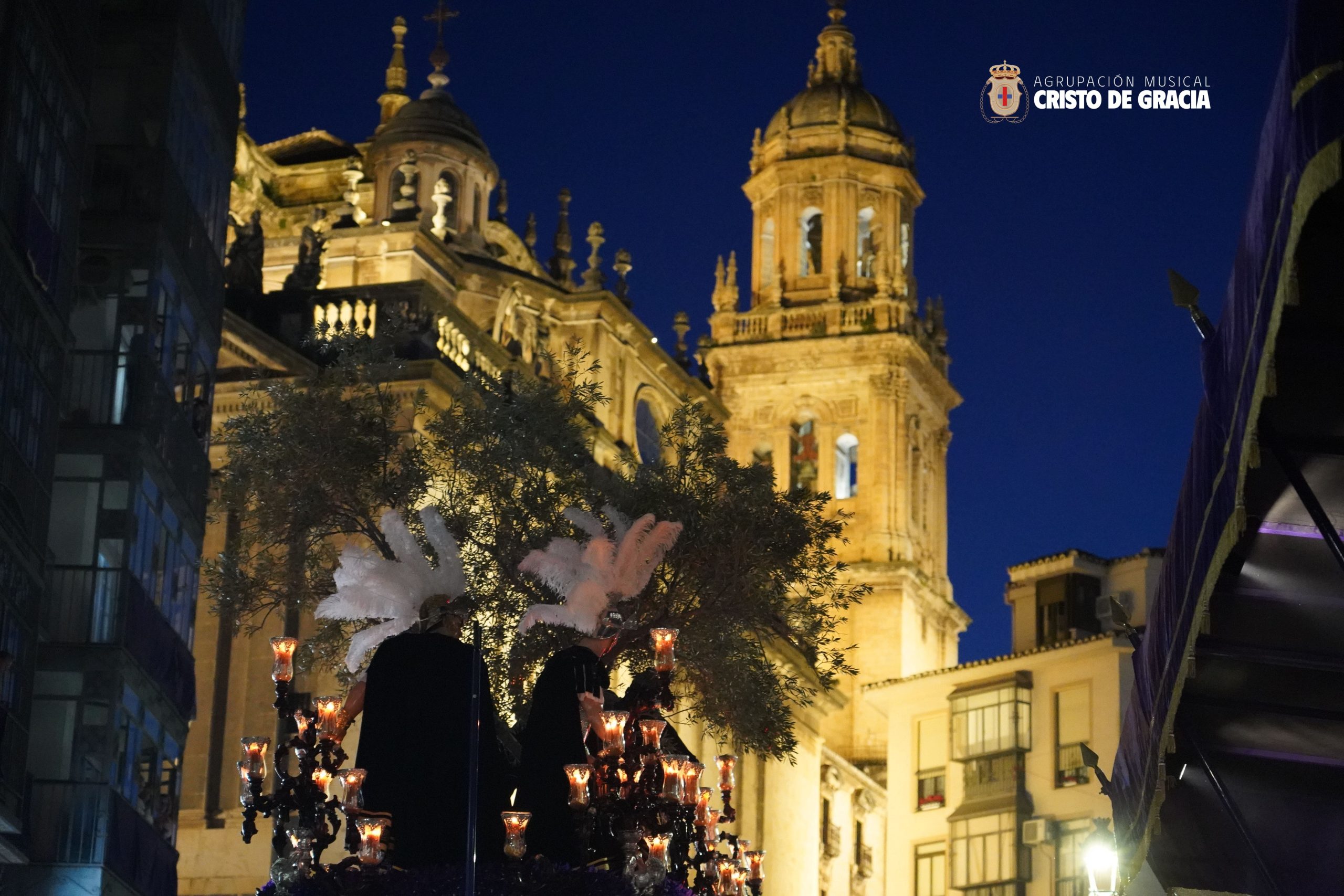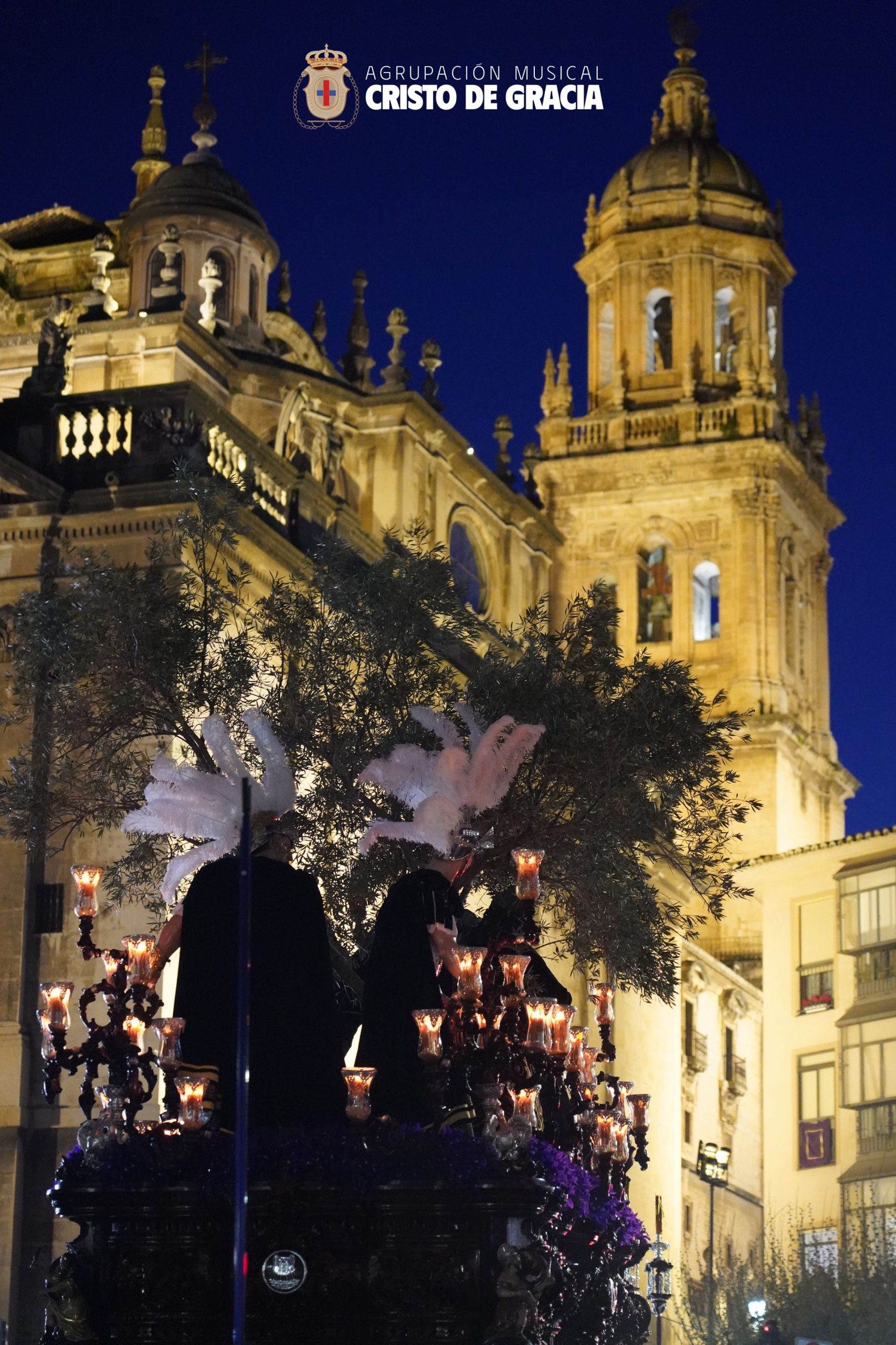 A medida que la tarde avanzaba y la noche caía sobre la ciudad de Jaén, el paso de misterio se adentraba en la Carrera, dejándonos una estampa verdaderamente espectacular con la imponente fachada de la Catedral de fondo. En este tramo, el magnífico hacer de su cuadrilla de costaleros se fundió con un repertorio donde sonaron marchas como El Amor del Santo Reino, El Legado, Juramento, La Traición y ¡Tú eres Victoria!, dejando una carrera para el recuerdo.