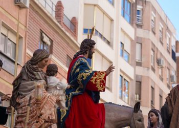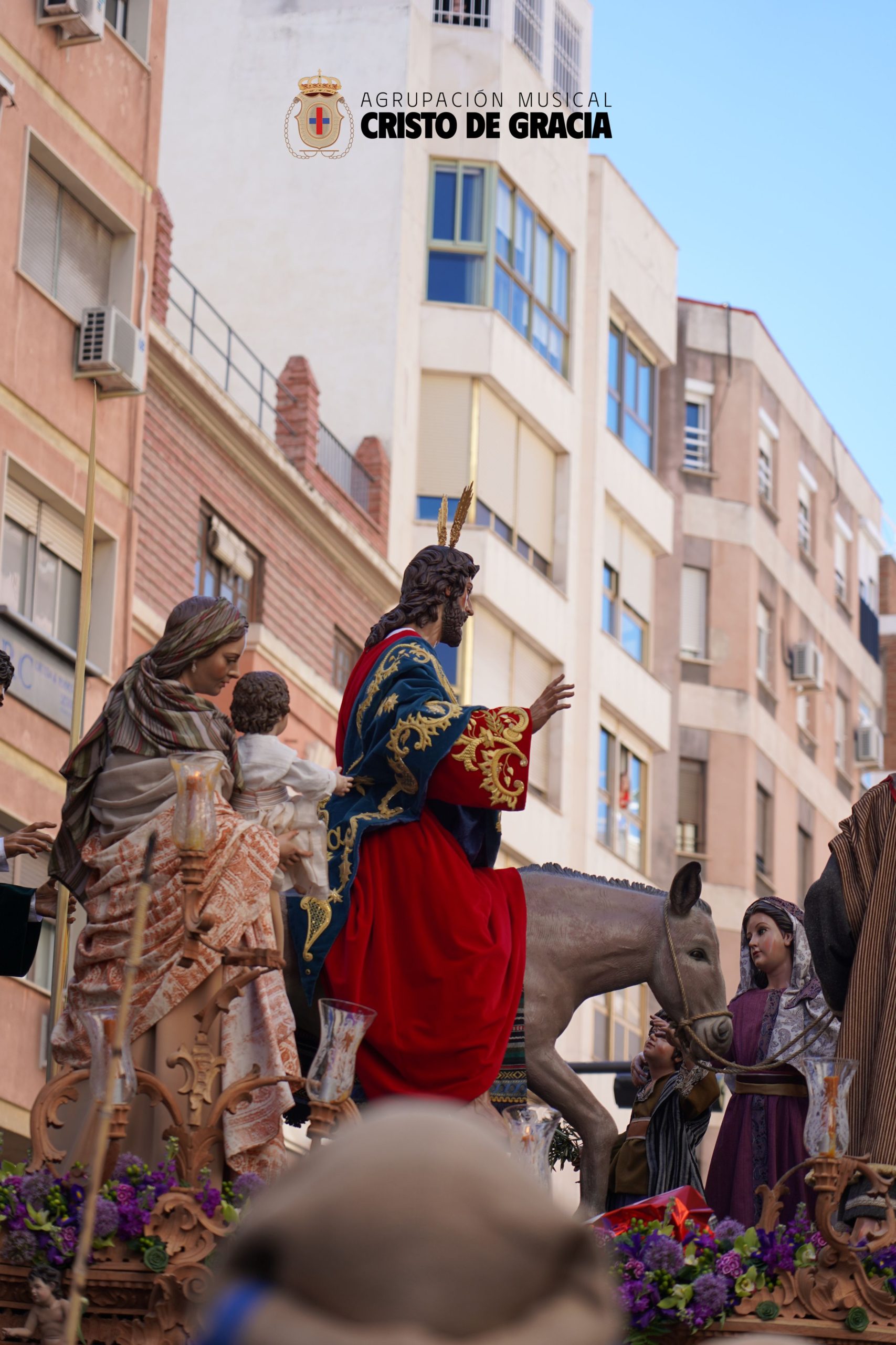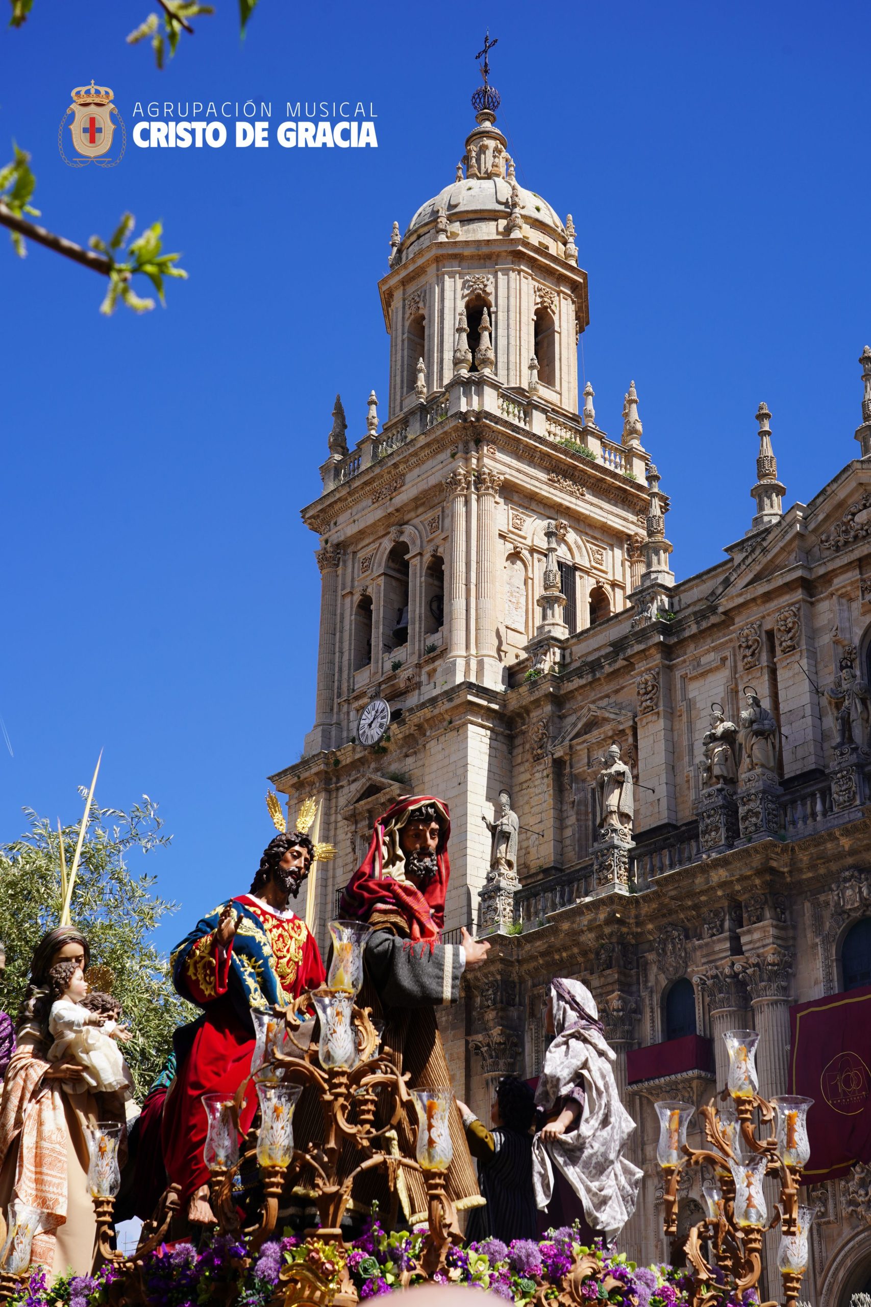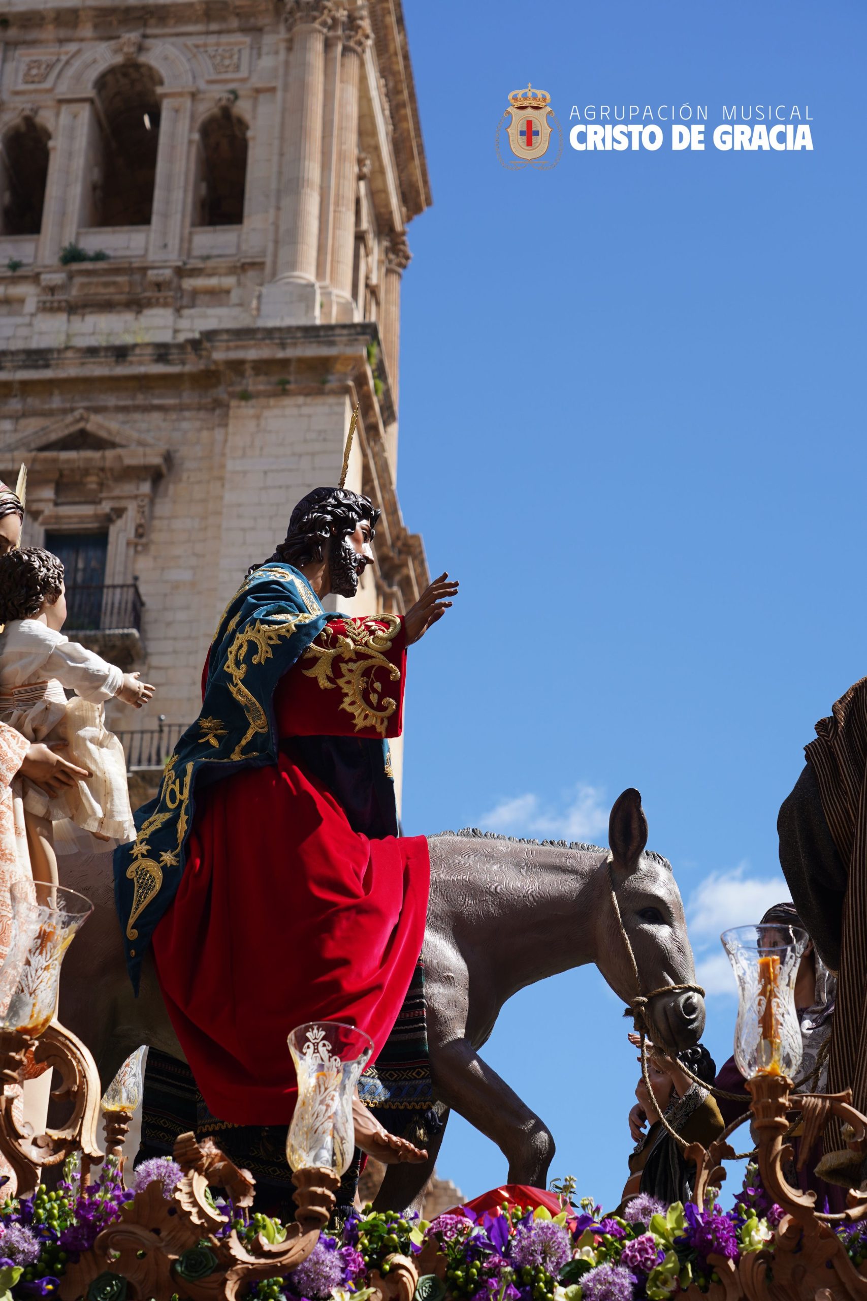 La mañana del Domingo de Ramos amaneció radiante para marcar el inicio de la Semana Santa de Jaén. Las puertas de la Iglesia Parroquial de Nuestra Señora de Belén y San Roque se abrían de par en par para ver salir a Nuestro Padre Jesús de la Salud entrando en Jerusalén. Una multitud aguardaba a la Hermandad de la Borriquilla en un ambiente rebosante de palmas y la inconfundible ilusión que envuelve a la primera cofradía en la calle.