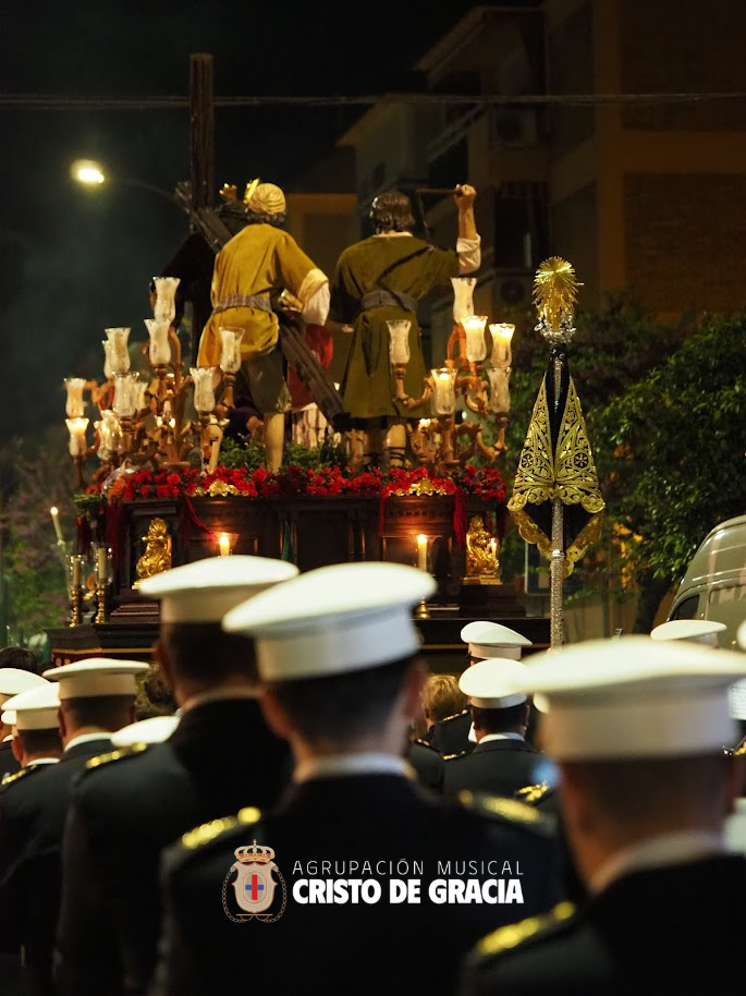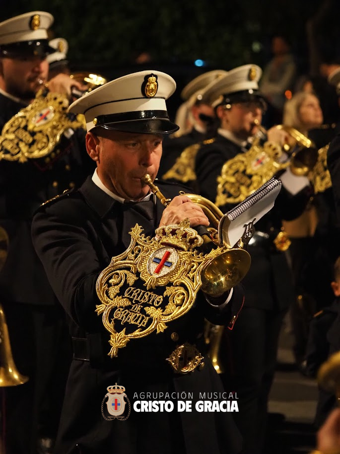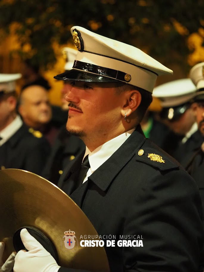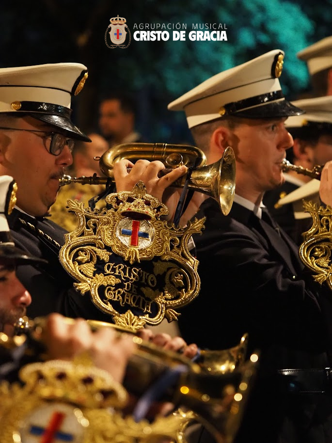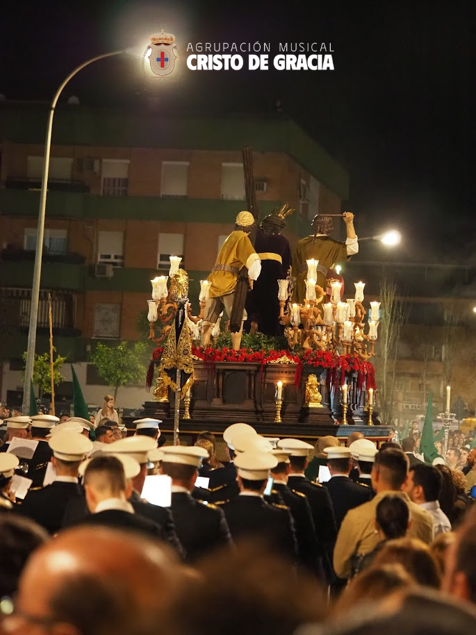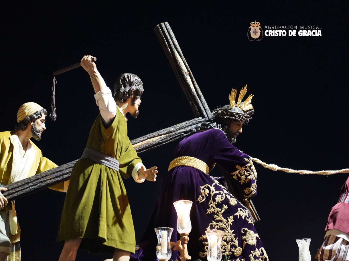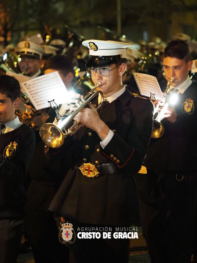 Uno de los momentos más memorables de la jornada se vivió a la llegada de la popular cuesta de la calle Historiador Jaén Morente. Completamente arropado por el calor incondicional de sus vecinos y del resto de la ciudad, el paso de misterio avanzó a los sones de nuestra formación. Marchas como Tu Mirada, Lux Resurrectionis, Prendido por Amor y ¡Tú eres Victoria! resonaron en este enclave tan espectacular, fusionándose con el rachear de los costaleros y creando una atmósfera mágica en la noche del barrio.