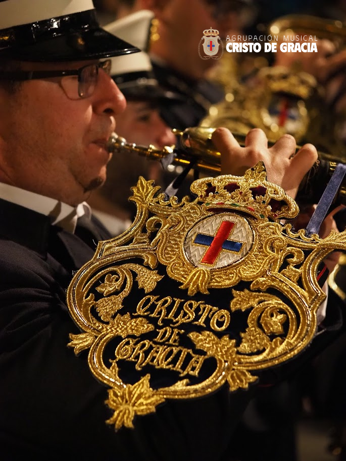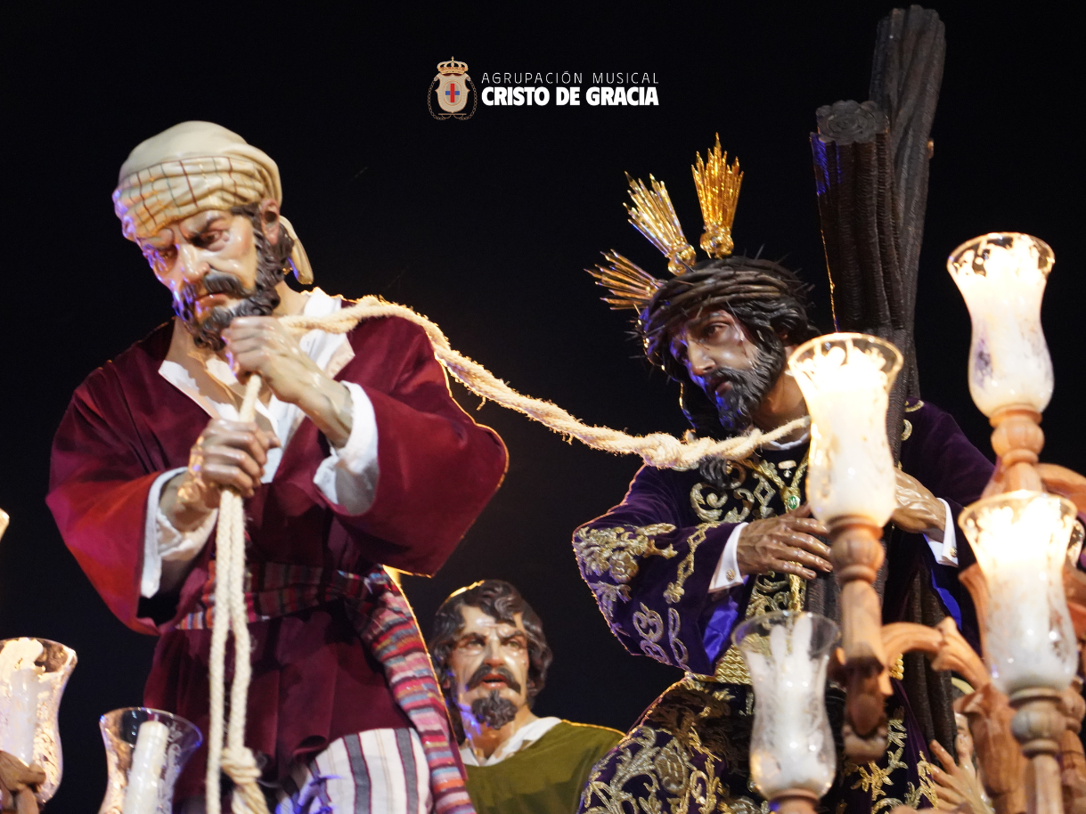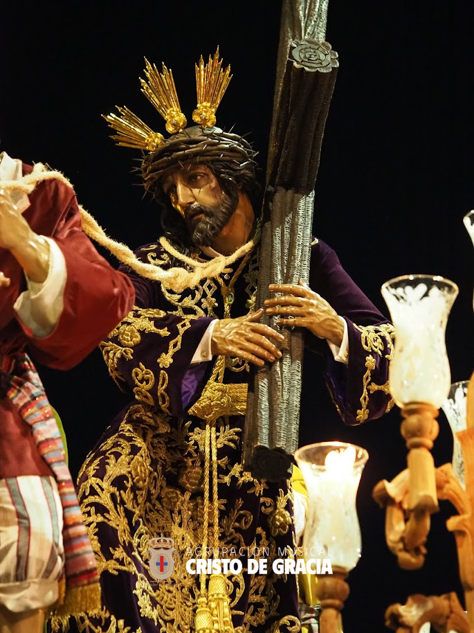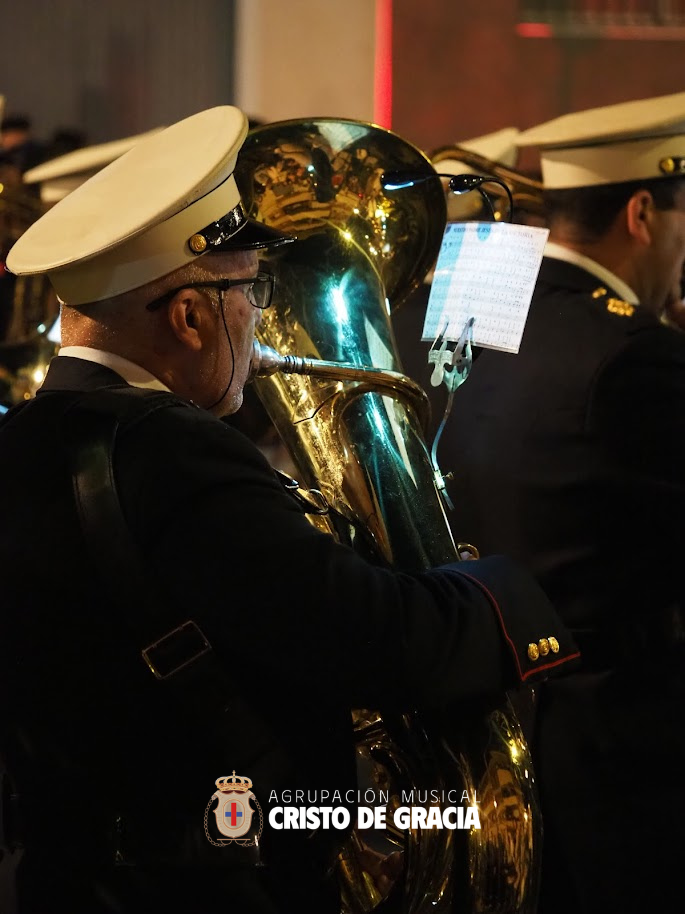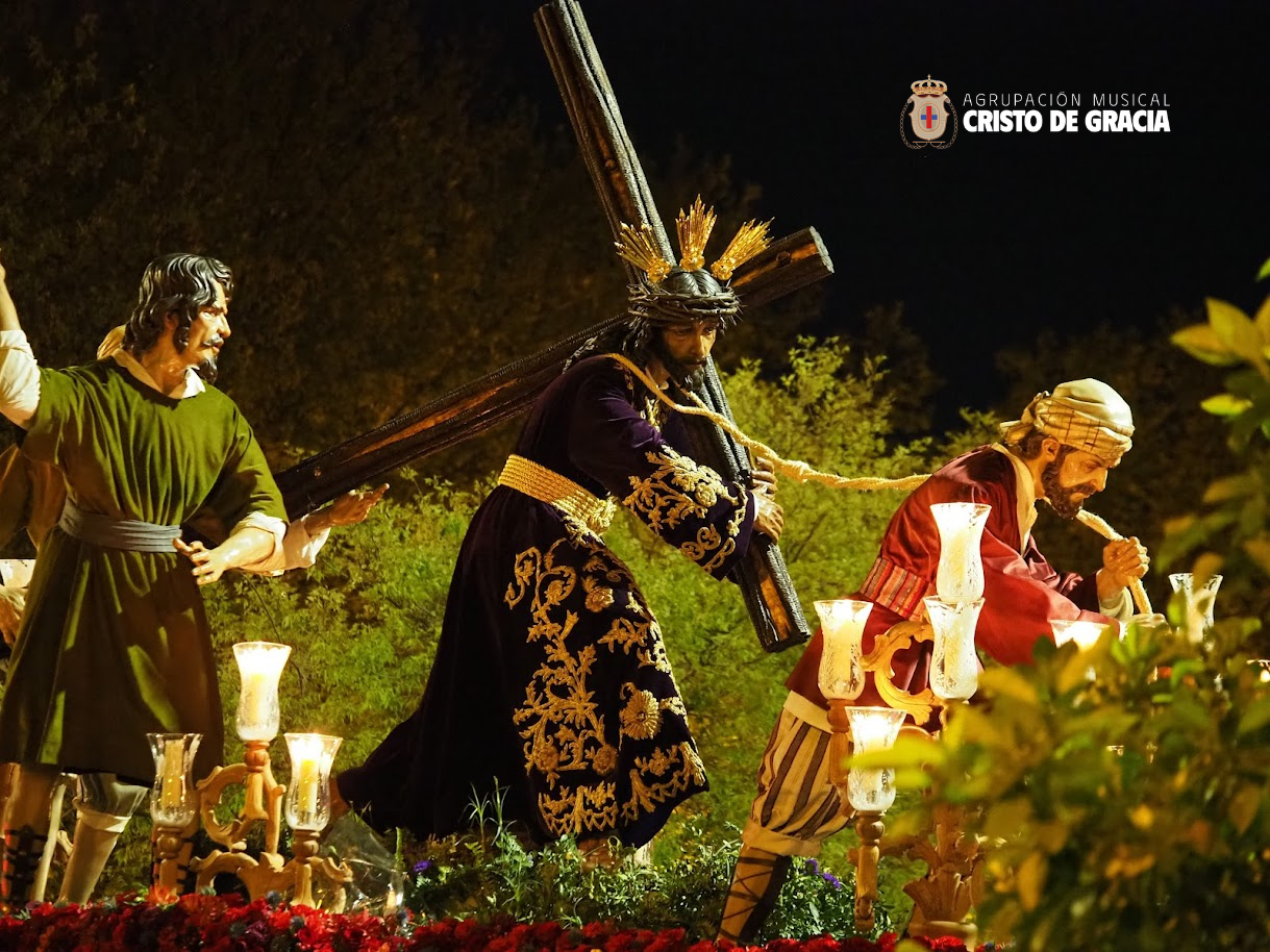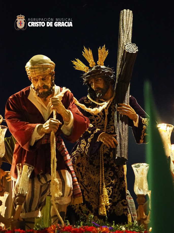 Uno de los momentos más memorables de la jornada se vivió a la llegada de la popular cuesta de la calle Historiador Jaén Morente. Completamente arropado por el calor incondicional de sus vecinos y del resto de la ciudad, el paso de misterio avanzó a los sones de nuestra formación. Marchas como Tu Mirada, Lux Resurrectionis, Prendido por Amor y ¡Tú eres Victoria! resonaron en este enclave tan espectacular, fusionándose con el rachear de los costaleros y creando una atmósfera mágica en la noche del barrio.