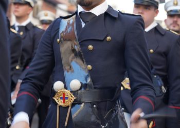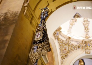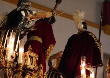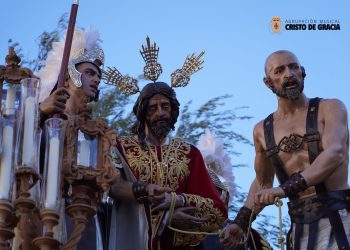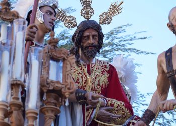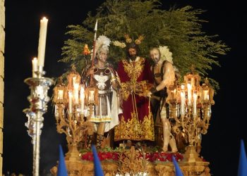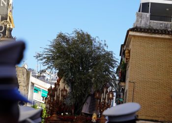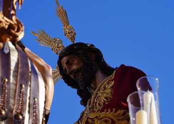 Tras discurrir con paso firme por la Carrera Oficial, el misterio inició su camino de vuelta a María Auxiliadora. Los propios aledaños de la Catedral fueron testigos de otro de los momentos cumbre de la jornada, donde el andar de la cuadrilla del Señor se fundió con el compás de Juramento.